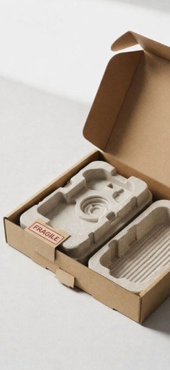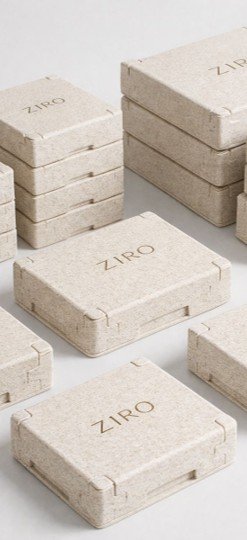 Precision-engineered packaging shapes crafted from bio-residue composites, balancing strength with refined minimalism.